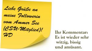 Ein ständiger Leser meines Blogs informiert anscheinend öfters eine Bekannte über meine neue Meinung. Ich kenne sie nicht und weis nur, dass sie Mitglied in einer der Parteien ist, die die neue Regierung bilden wollen. Deshalb veröffentliche ich diesen „indirekten“ Kommentar, der mir natürlich gefällt, ohne Namensnennung.